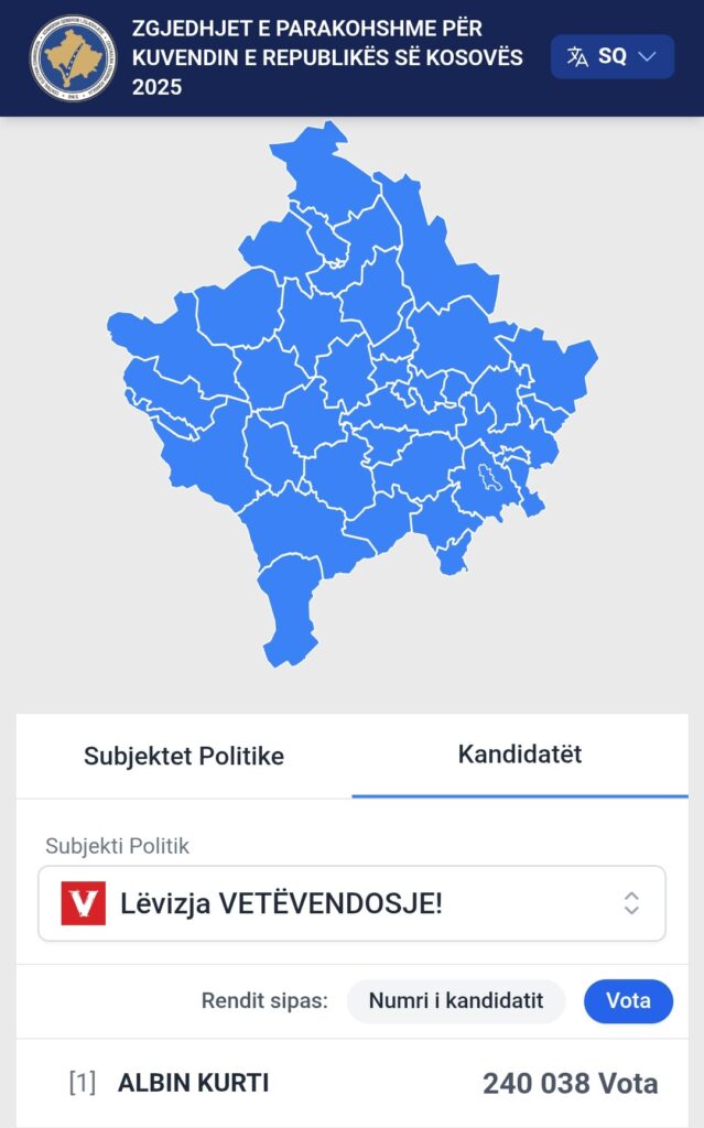 Apo në vota 293 mijë e 253 , ku jo të gjithë e kanë votuar liderin e tyre Kurtin.